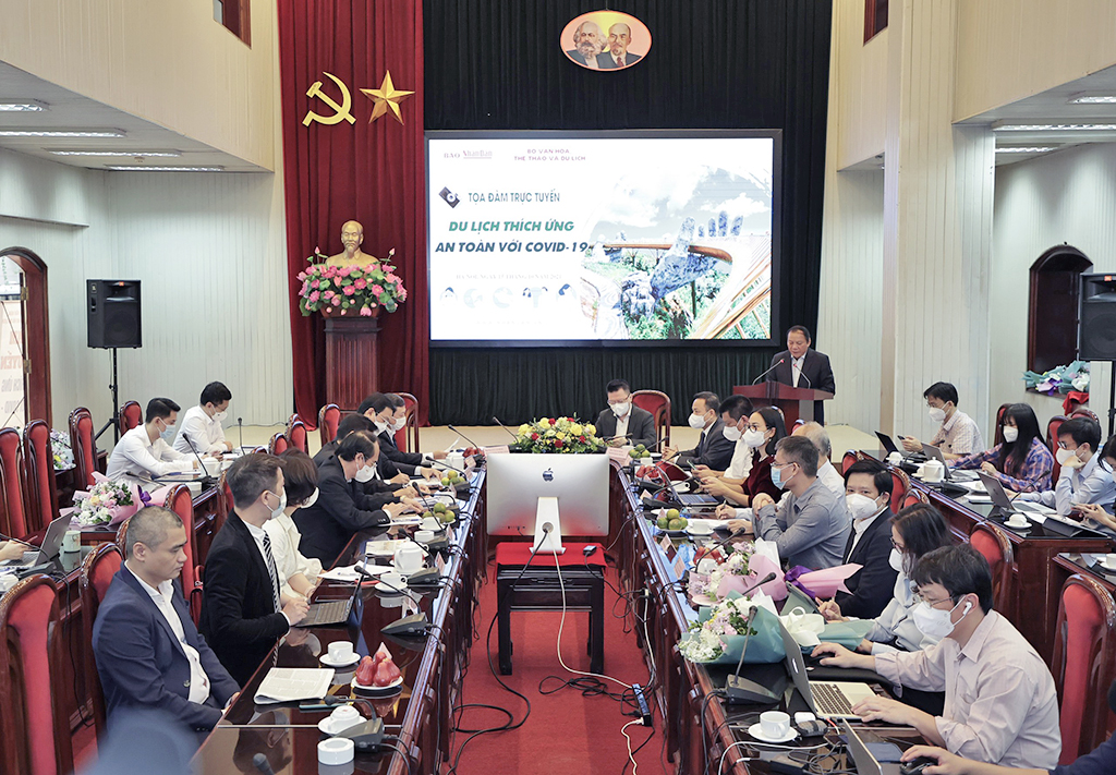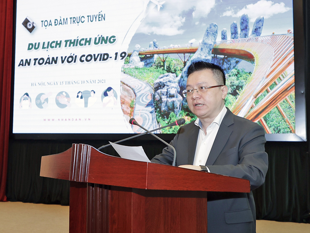 Phát biểu khai mạc buổi tọa đàm, Tổng Biên tập Báo Nhân dân Lê Quốc Minh nhấn mạnh, trước những diễn biến phức tạp của đại dịch Covid-19, ngành du lịch và lữ hành đã chịu những tổn thất nặng nề. Theo công bố của Tổng cục Thống kê, trong 9 tháng đầu năm 2021, khách quốc tế đến Việt Nam ước tính đạt 114,5 nghìn lượt người, giảm 97% so với cùng kỳ năm trước. Tổng thu từ khách du lịch giảm 41%. Sau thời gian dồn lực chống dịch bằng những biện pháp quyết liệt nhất, triển khai chiến dịch tiêm chủng vaccine ngừa Covid-19 lớn nhất trong lịch sử, tình hình dịch bệnh đã dần được kiểm soát. Không nằm ngoài xu hướng chung của thế giới, Chính phủ Việt Nam đã xác định chuyển hướng thích ứng an toàn, linh hoạt với dịch Covid-19, từng bước mở cửa trở lại nền kinh tế.
