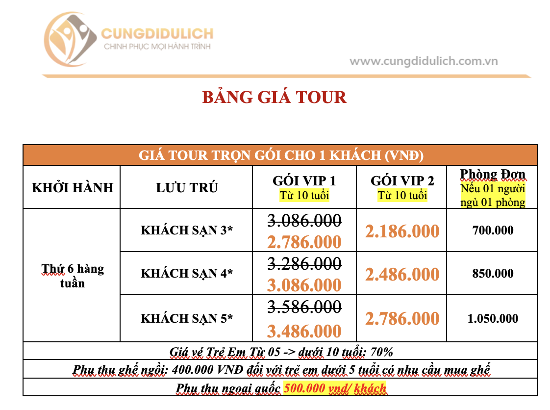 Từ 10 tuổi trở lên: giá tour như người lớn.