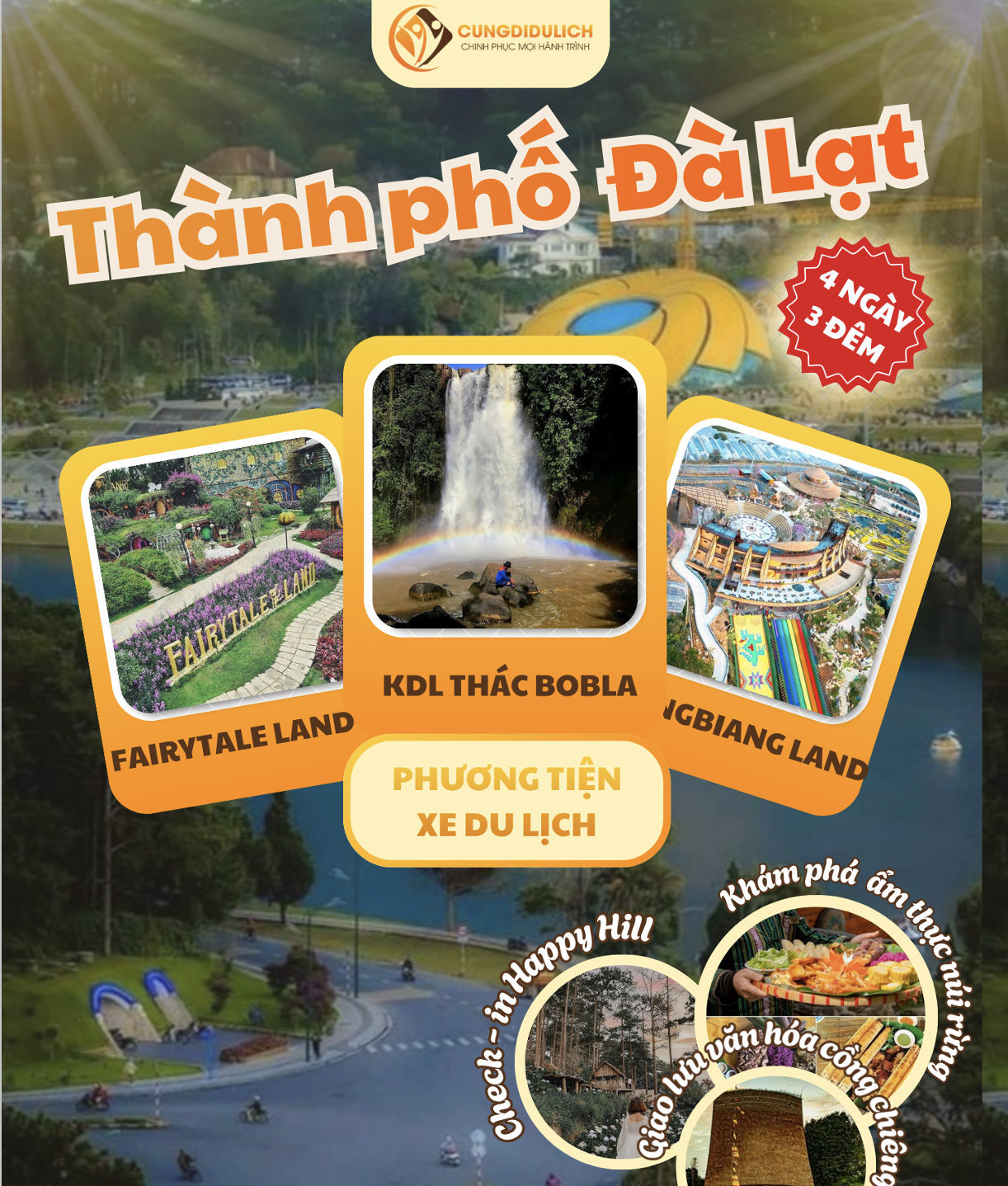 Cùng Đi Du Lịch giới thiệu chương trình Đà Lạt – Happy Hill – Thác Bobla khởi hành thứ 5 hàng tuần.