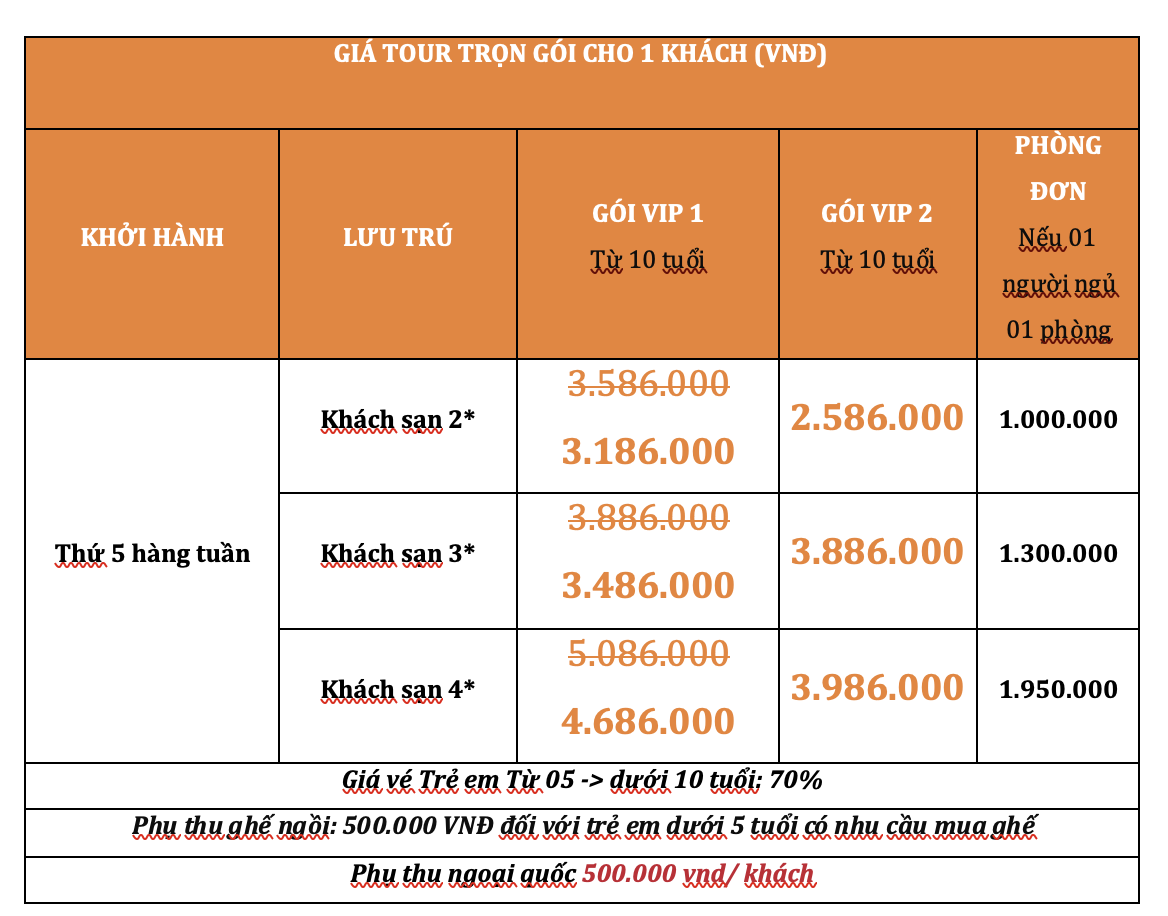 Từ 10 tuổi trở lên: giá tour như người lớn.