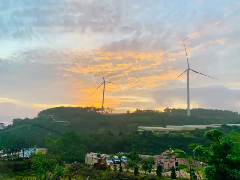Check - in với Cánh Đồng Điện Gió trên đồi chè xanh mát.