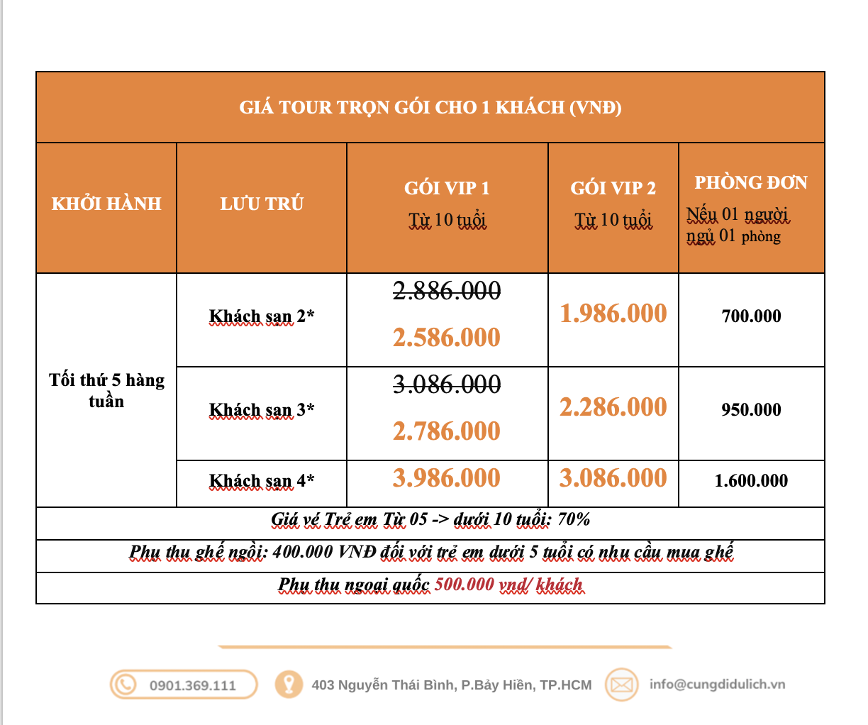 Từ 10 tuổi trở lên: giá tour như người lớn.