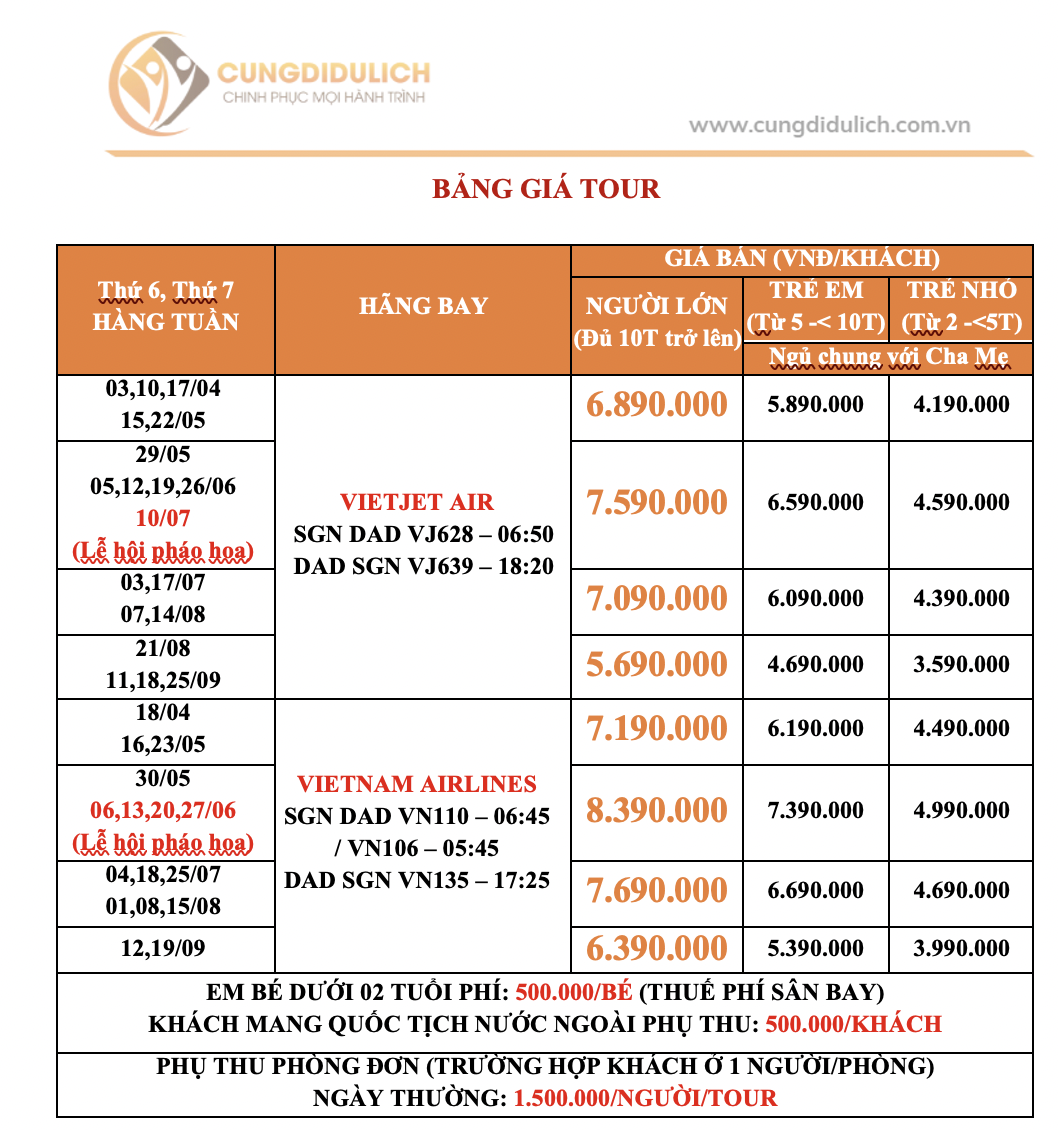 Chương trình du lịch Đà Nẵng – Hội An – Bà Nà Hills, của Cùng Đi Du Lịch khởi hành hàng tuần chỉ từ 5.690k.