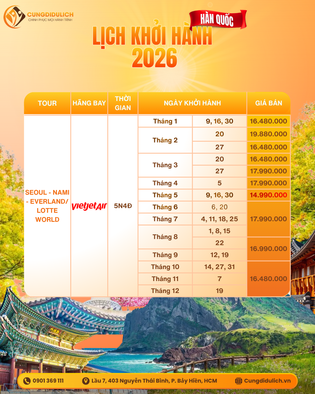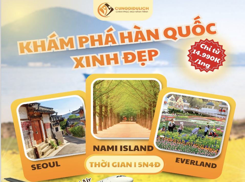 Cùng Đi Du Lịch giới thiệu chương trình Hàn Quốc: Seoul – Nami – Everland 5 ngày 4 đêm khởi hành hàng tuần.