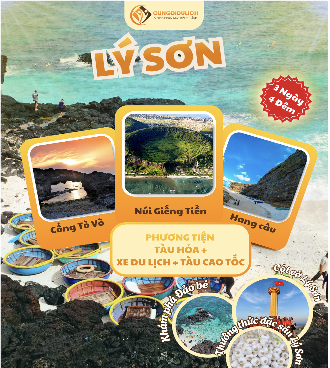 Cùng Đi Du Lịch giới thiệu chương trình du lịch Lý Sơn 3 ngày 4 đêm tàu hoả khởi hành thứ 5 hàng tuần.