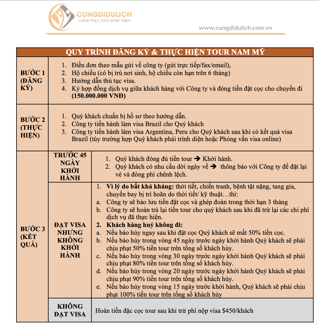 - Lệ phí visa Brazil, Peru, Argentina + phí dịch thuật hồ sơ, thư mời (Chile miễn visa)