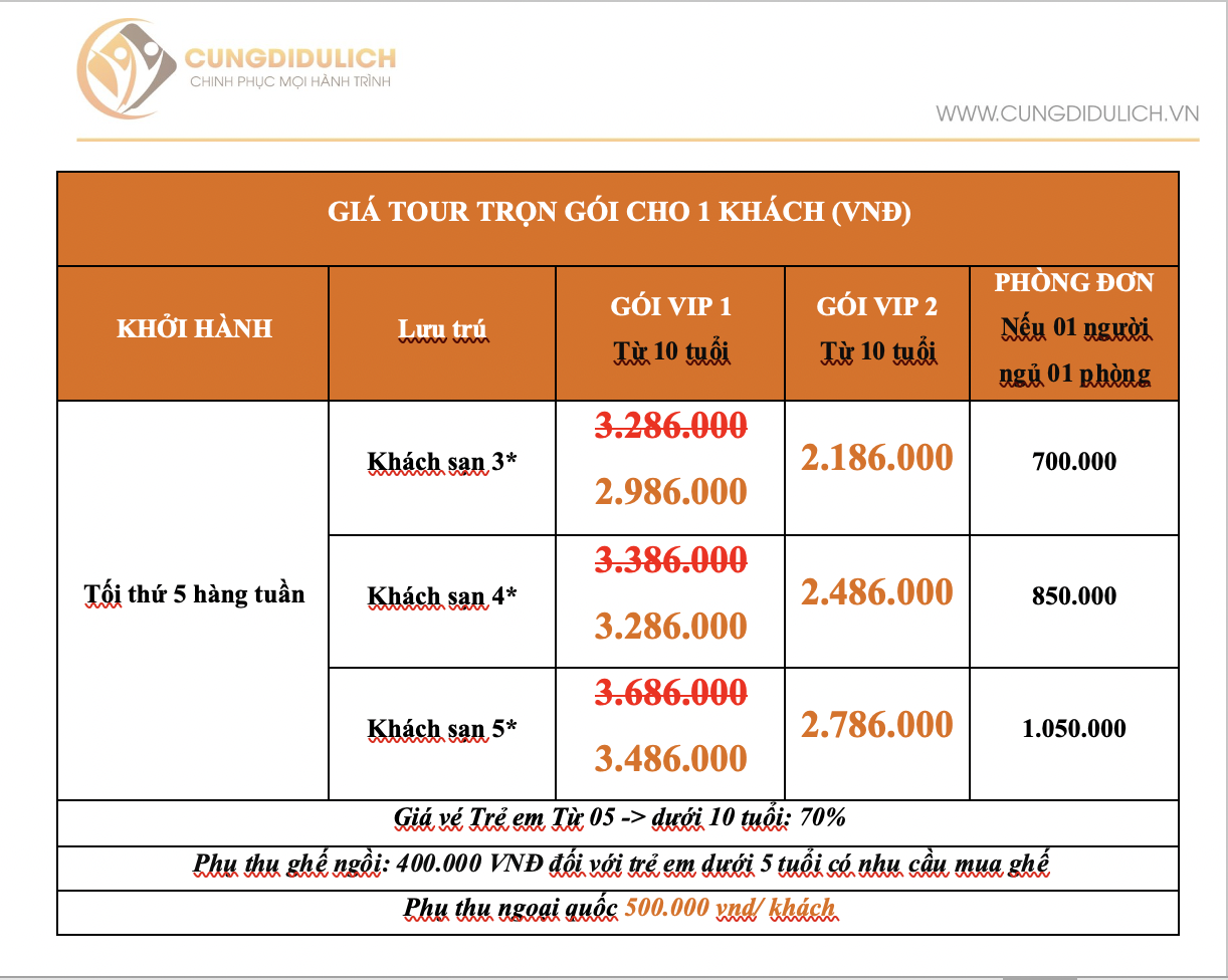 Từ 10 tuổi trở lên: giá tour như người lớn.