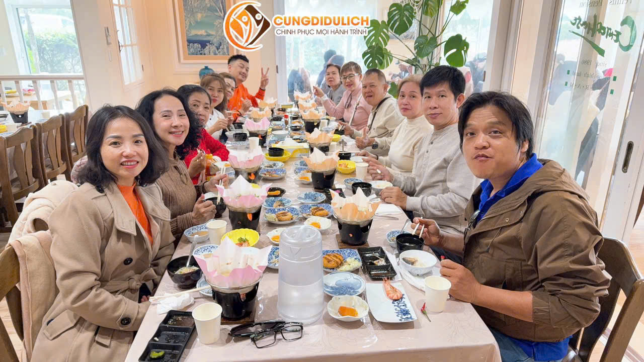 - Ăn sáng tại khách sạn; Ăn trưa & tối ẩm thực Nhật Bản tại nhà hàng địa phương: lẩu Shabu Shabu, thịt nướng, set menu Nhật…