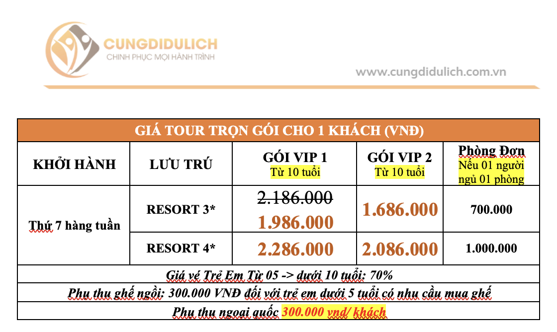 Từ 10 tuổi trở lên: giá tour như người lớn.