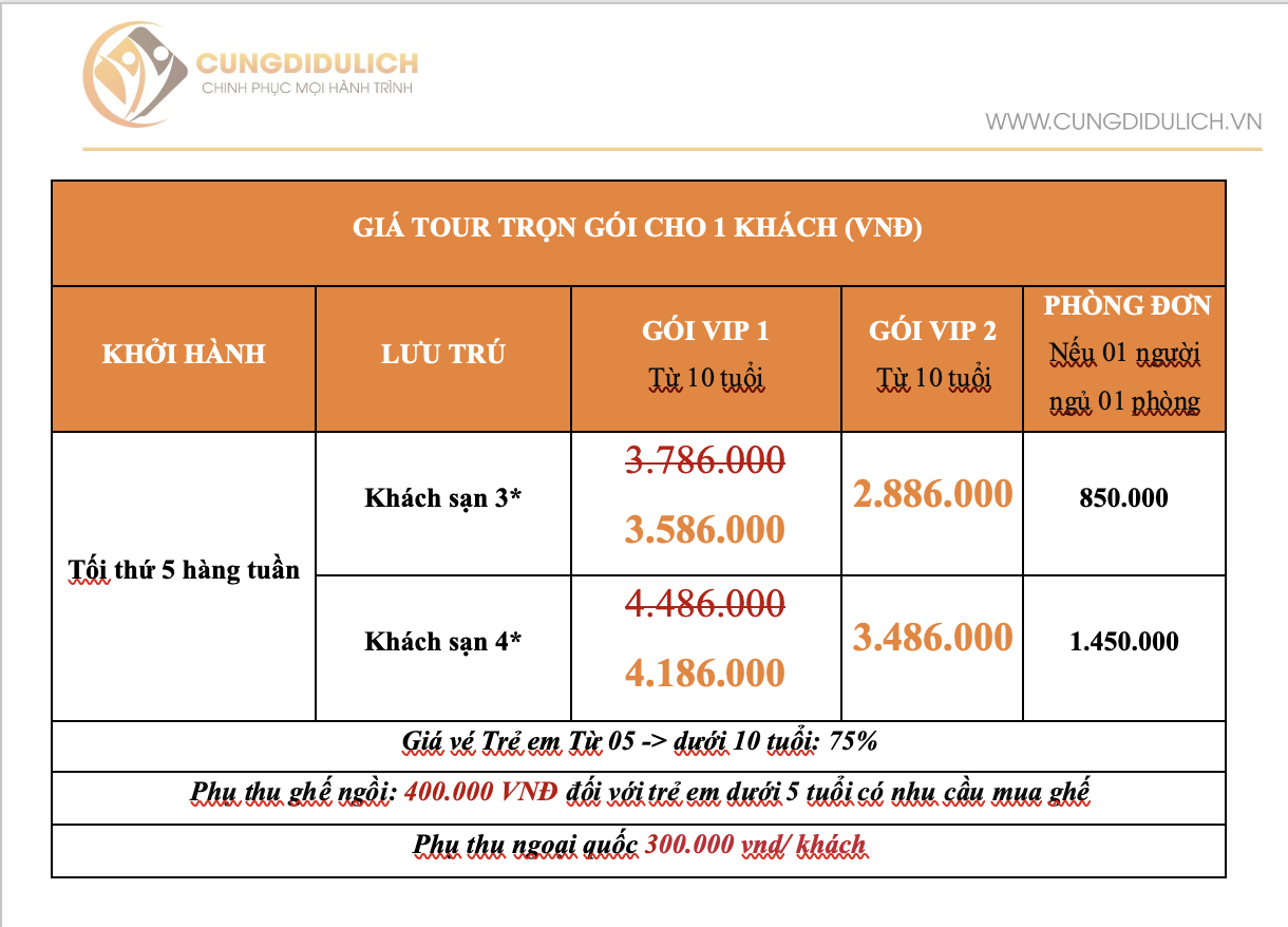 Từ 10 tuổi trở lên: giá tour như người lớn.