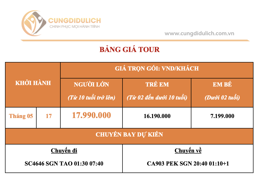 - Em bé: Từ 0 đến dưới 02 tuổi (ngủ chung giường với bố, mẹ): 30% giá tour.
