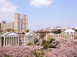 ❖ Trường Đại học Kyung Hee – Kiến trúc châu Âu cổ kính giữa không gian ngập tràn hoa anh đào, background check-in được yêu thích mỗi độ xuân về.