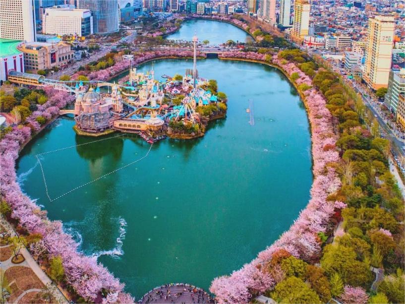❖ Hồ Seokchon – Lotte World – Vừa vui chơi trong nhà hiện đại, vừa dạo hồ ngắm hoa anh đào lãng mạn như phim Hàn.