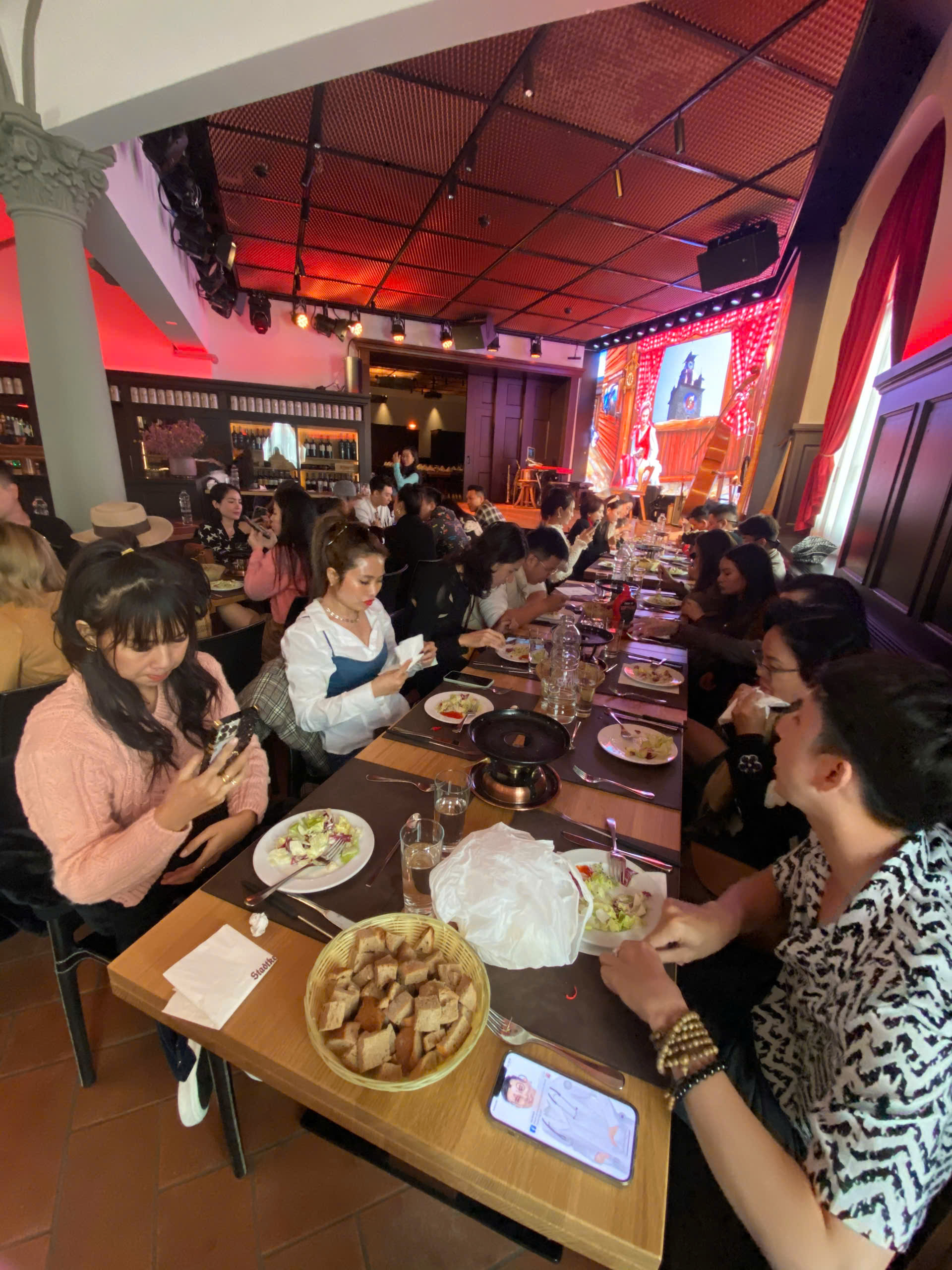 - Các bữa ăn theo chương trình: ăn sáng tại khách sạn + ăn trưa và ăn tối tại nhà hàng địa phương với các món ẩm thực kiểu Âu, Việt, Hoa (trung bình €12-€20/bữa/khách