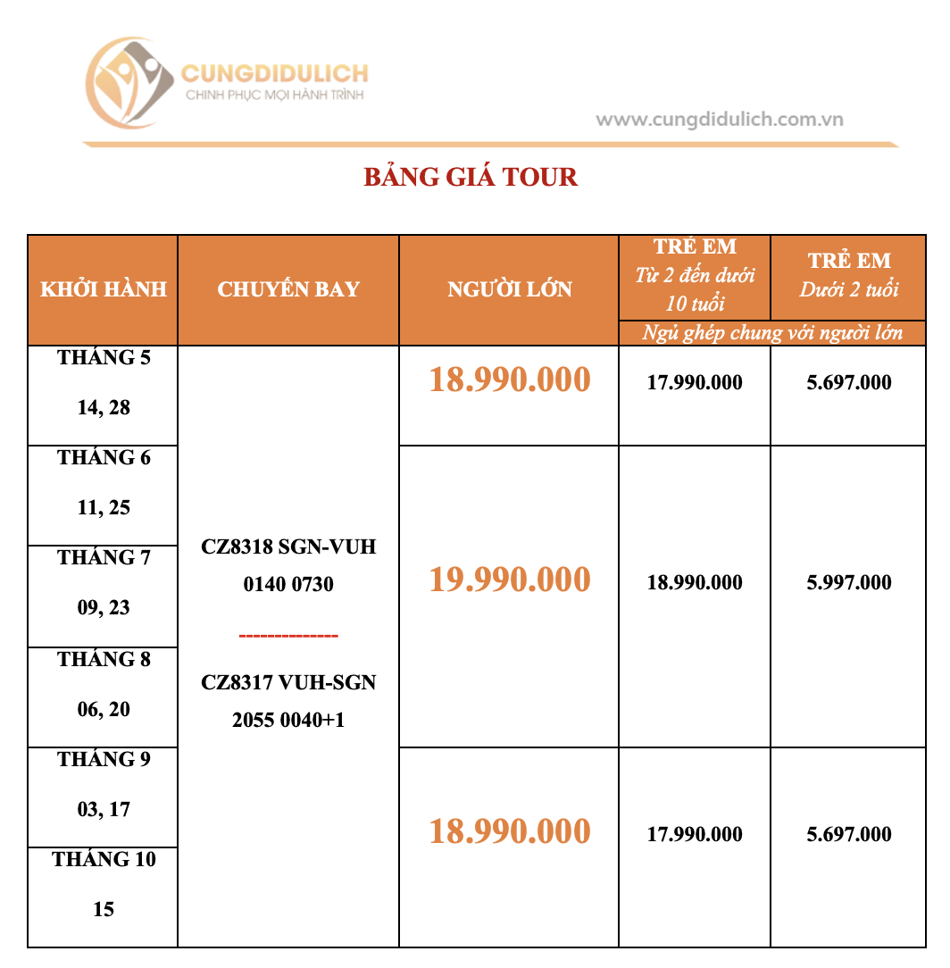 - Thứ tự các điểm tham quan và lộ trình chuyến đi có thể thay đổi tùy theo tình hình thực tế (thời tiết, giao thông, …) nhưng vẫn đảm bảo đầy đủ các điểm tham quan như lúc đầu.