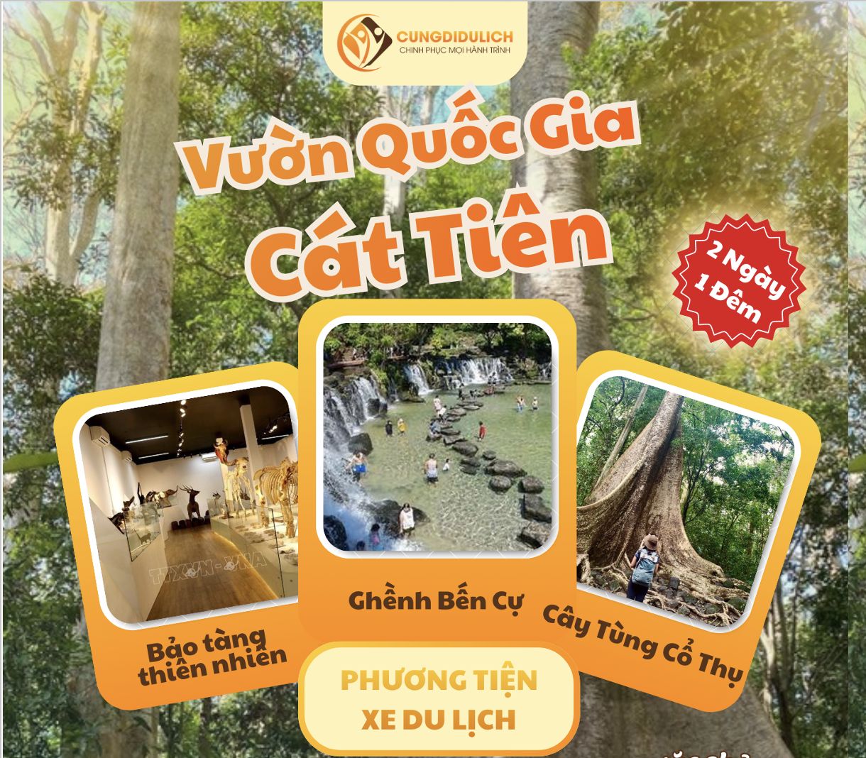 Cùng Đi Du Lịch giới thiệu chương trình Vườn Quốc Gia Cát Tiên 2 ngày 1 đêm, khởi hành thứ 7 hàng tuần năm 2026 vô cùng hấp dẫn.