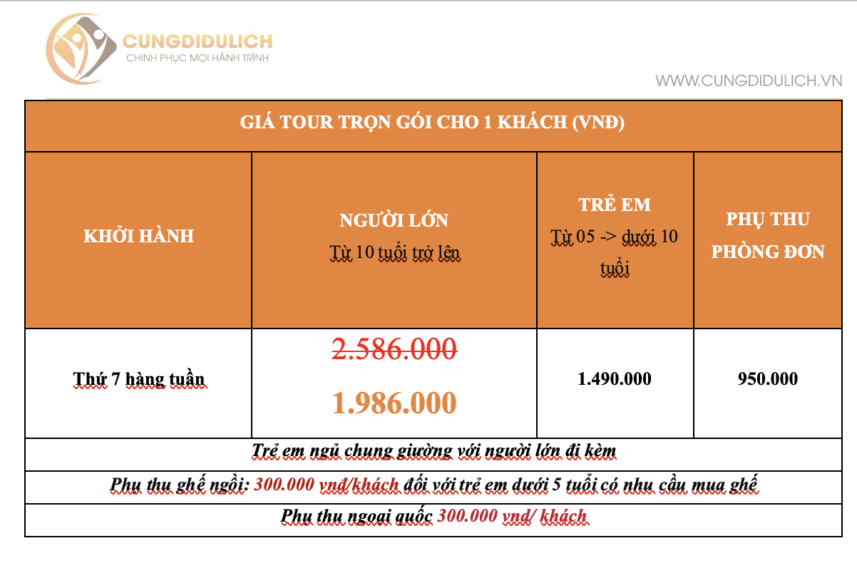 Từ 10 tuổi trở lên: giá tour như người lớn.